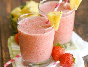 2 – Não coe, despeje em um copo e decore com abacaxi ou morangos.
